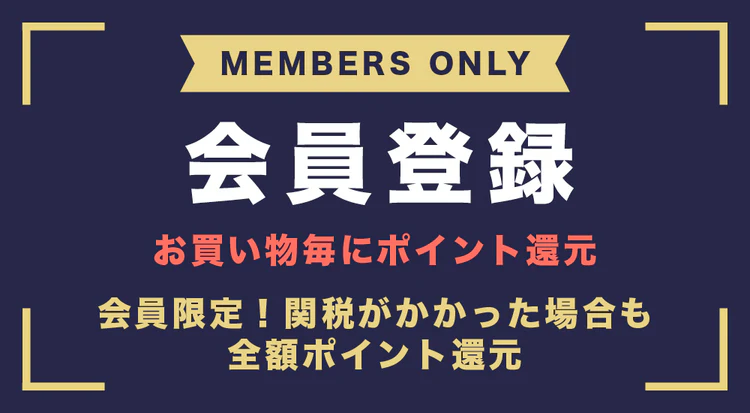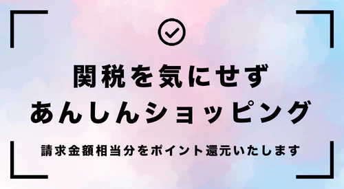 国際配送のため、関税等(輸入税、付加価値税、通関手数料等)が別途必要となる場合がございます。商品到着後に輸送会社より請求書が届いた場合、全額ポイント還元いたします。